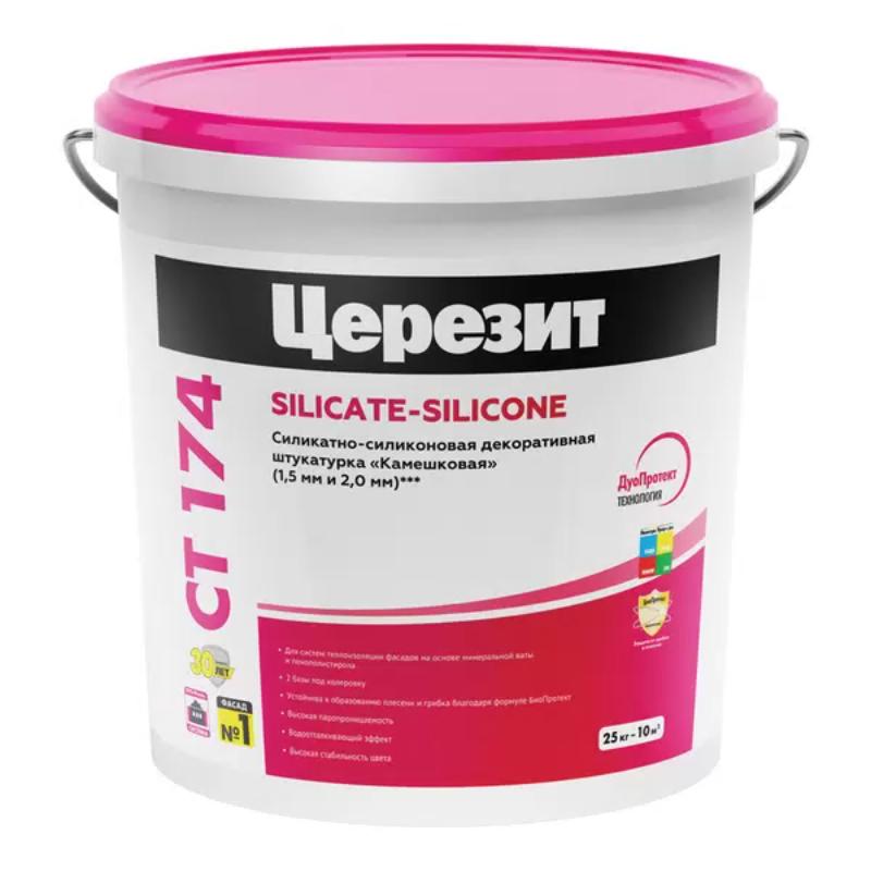 Силикатно-силиконовая штукатурка Ceresit CT 174 - 25 кг